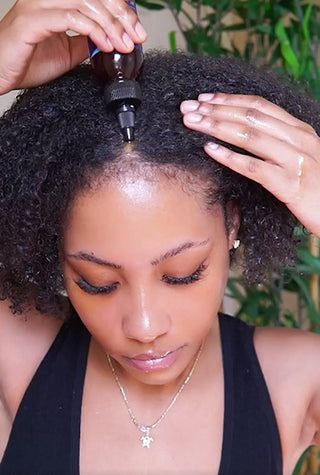 Massez l'huile dans votre cuir chevelu du bout des doigts en travaillant des racines aux pointes.