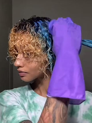 Use a hooded dryer or hand held diffuser to completely dry your Curl Color application (to avoid color transfer).
